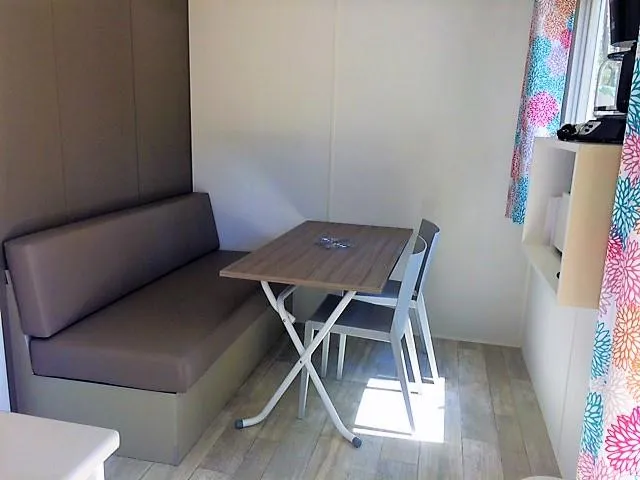 Proximité de la plage naturiste Large choix de commerces, incluant épicerie bio et plusieurs choix de restaurants Les emplacements relativement grands et ombragés La facilité de la réservation par téléphone peu de temps avant notre arrivée Large panel d'activités proposées pour tous et toute la journée