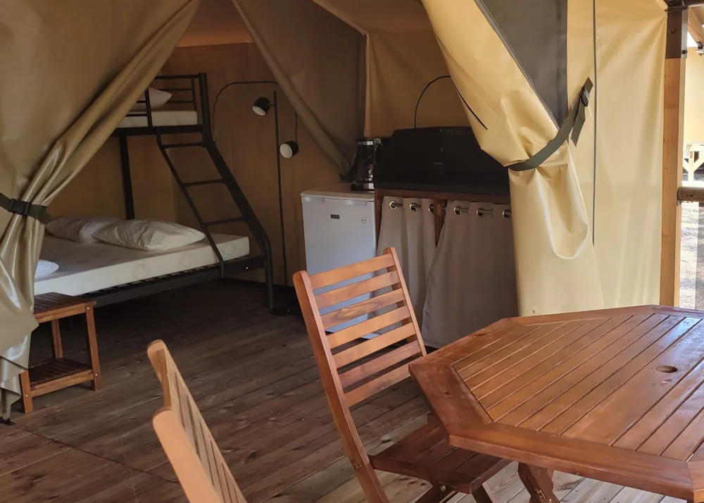 Spécialement conçus pour accueillir les grandes tentes, nos emplacements Grand Safari offrent un vaste espace où confort et liberté prennent tout leur sens. Nichés au cœur d’un environnement naturel préservé, ils permettent de profiter pleinement de la vie en plein air sans compromis sur la tranquillité. Leur superficie généreuse facilite l’installation des grandes structures et garantit une vraie sensation d’intimité. Sanitaires et points d’eau sont situés à proximité pour un séjour pratique et agréable. Idéal pour les campeurs en quête d’espace, de nature et de sérénité.